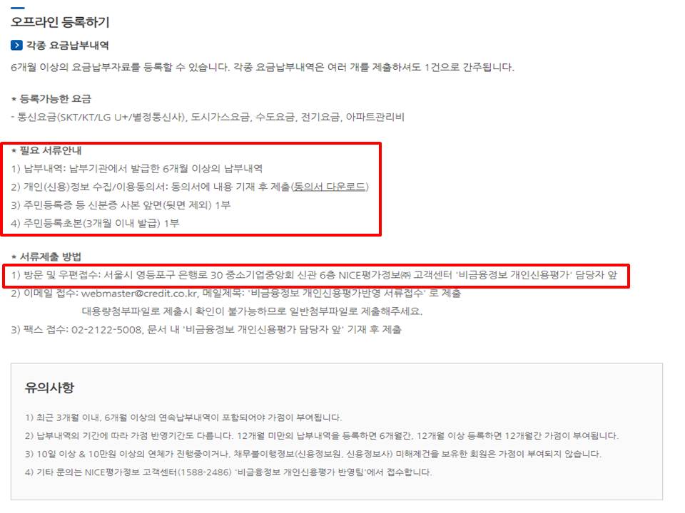 서류준비가 완료되셨으면 해당 서류를 나이스 신용평가 정보 측으로 보내면